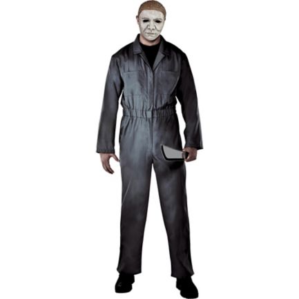 Take on Michaels iconic uniform with these blue snap front coveralls. Theyre covered in charred marks and burned holes from his last encounter with the Strode family. STKK Halloween Michael Myers MaskRealistic Horror Mask for Carnival Costume Party MasqueradeHorror Movie Cosplay MaskLatex Full Head MaskWhite13x3x7 inches.